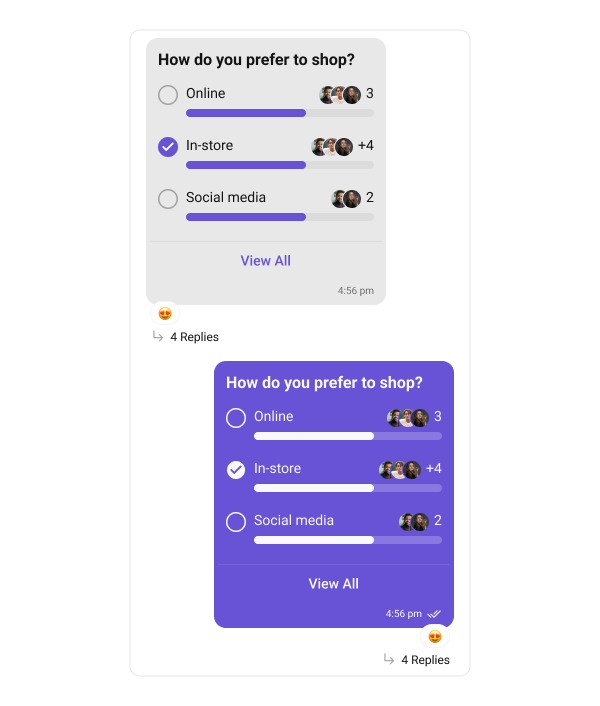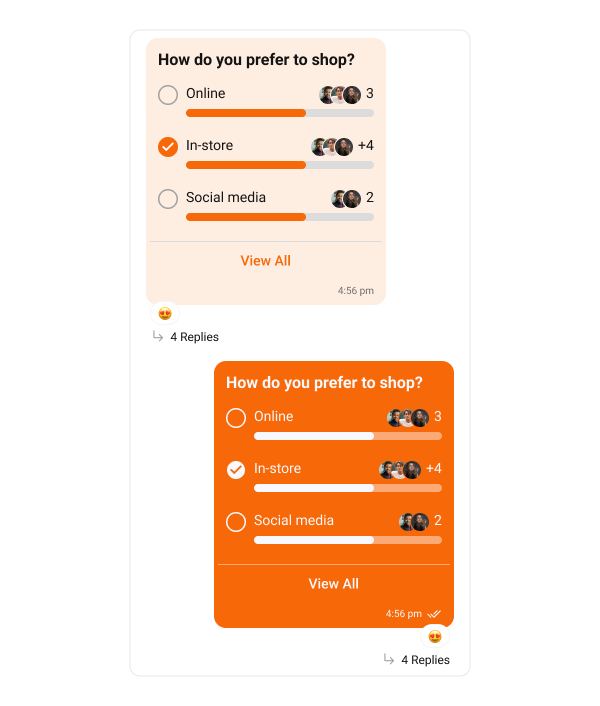 Poll bubbles display messages with polling. The following code snippet shows how customize the Poll message bubble:- Swift