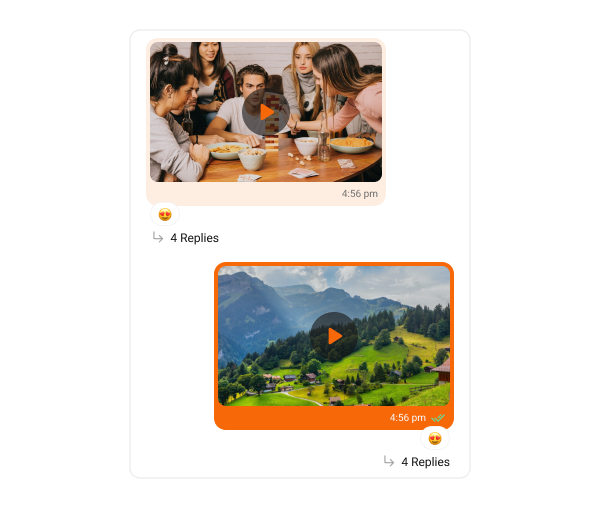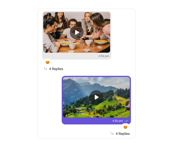 Video bubbles display messages with video clips. The following code snippet shows how customize the Video message bubble:- Swift