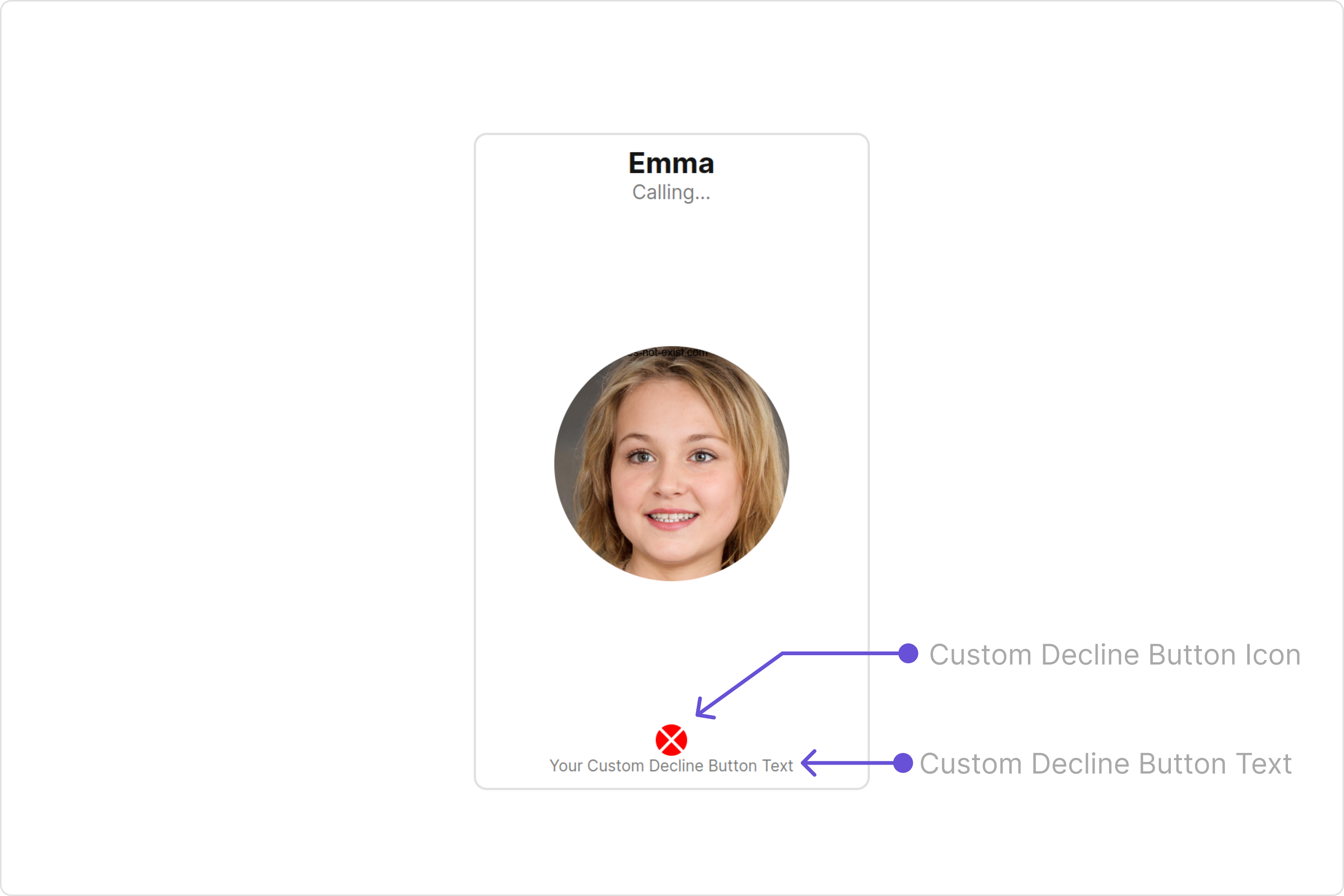 | declineButtonIconURL | Used to set custom decline button icon URL | declineButtonIconURL='Your Custom Decline Button Icon URL' |